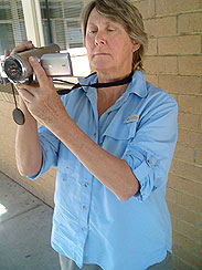 north with a camcorder at the ready and took the dank elevator
