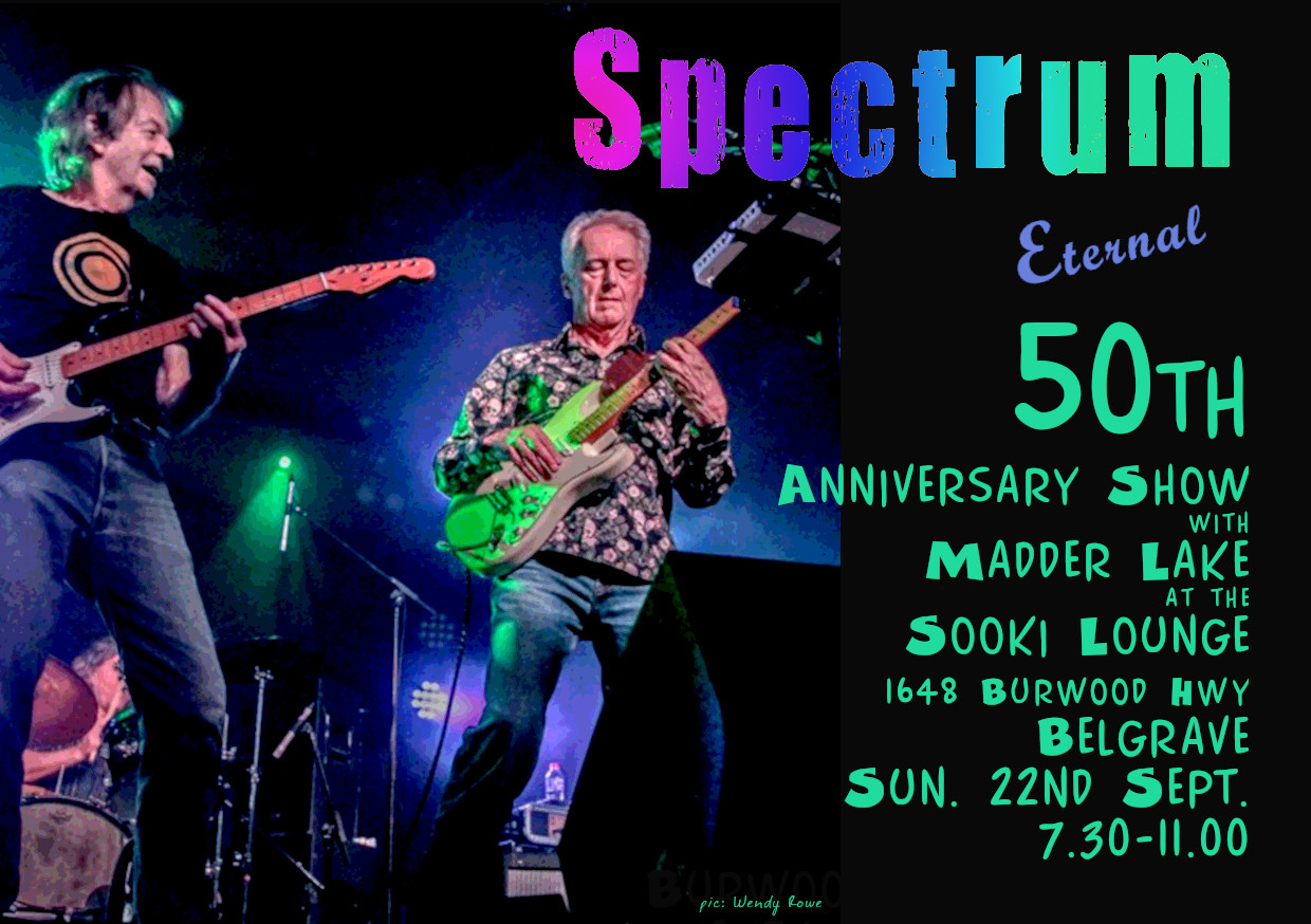 a NB – If you can’t make either of these two shows or you just can’t get enough of Spectrum, then there’s the codger-friendly SA Variety gig on the arvo of Sunday the 28th 1.00 – 4.00 at the Barristers Block Wines 141 Onkaparinga Valley Rd Woodside 8389 7706 trybooking.com.au $25
