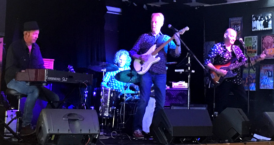the first public appearance of The Suits, the guitar, bass, drums